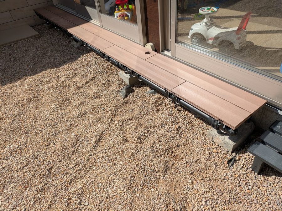 そこで、前回のウッドデッキDIYついでに、ここにもウッドデッキを作ることで出入りを楽にしたい。