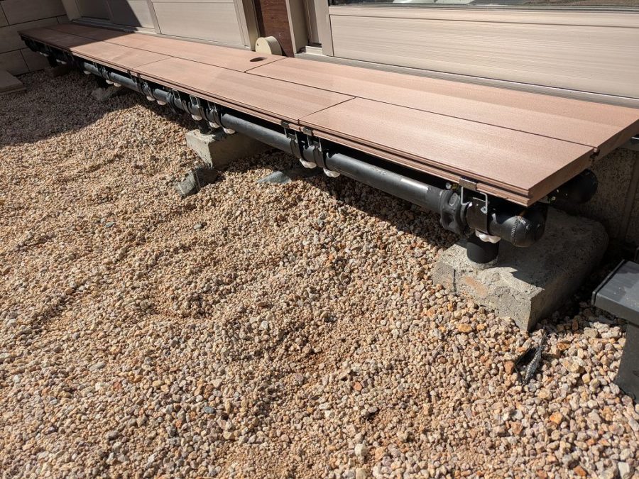 黒く塗装し、これまでのウッドデッキDIYと同様にダクターチャンネルを設置して床板を固定する。
