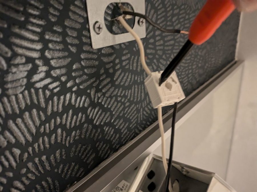 ものの数分で終わる作業であるが、電気工事士の資格がないとやってはいけません。