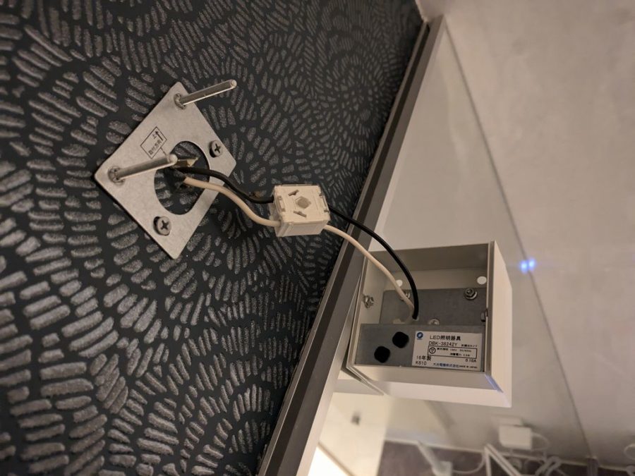 新しい照明のコネクタに電線を突っ込めば完成。