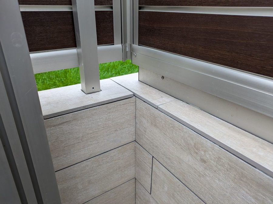 タイルが貼れたらフェンスを再度取り付けて完成!