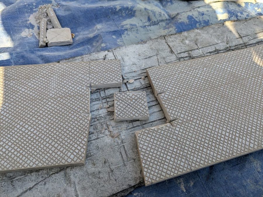 こうして、結局は裏面からグラインダーで少しずつ切っていく手法に落ち着いたのだが、チョット油断したら切れ目が入りすぎたり、パキっと割れたりとなかなか難しい😢