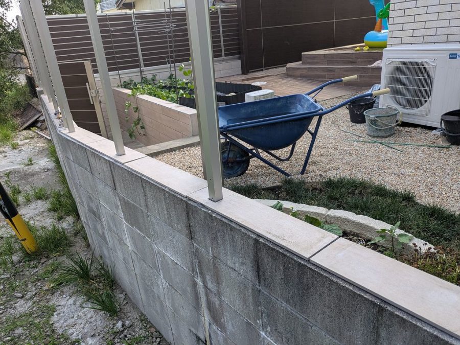 ブロック塀にタイルを貼れば一気にオシャレになる。