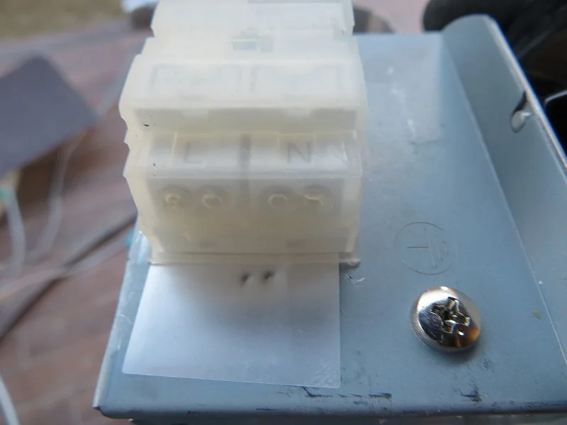 ケーブルは、VVFケーブル1.6×2を使用。屋外で使用すると劣化が気になるところだけど、屋根の下なのである程度は紫外線がカットされるはず。