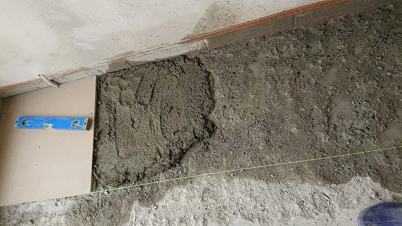下地の高さは少し低めにしているので、高さ調整をしながらタイルを貼り付ける必要がある。