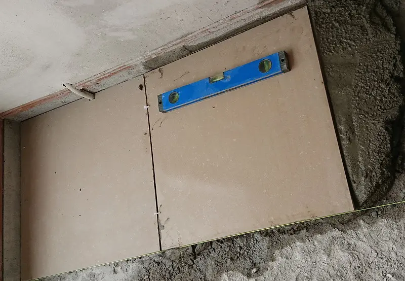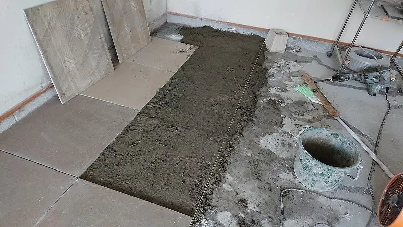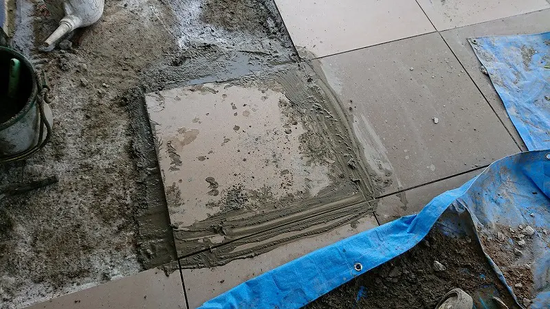 タイルが沈み過ぎた場合は、一旦タイルを剥がして貼り直す。