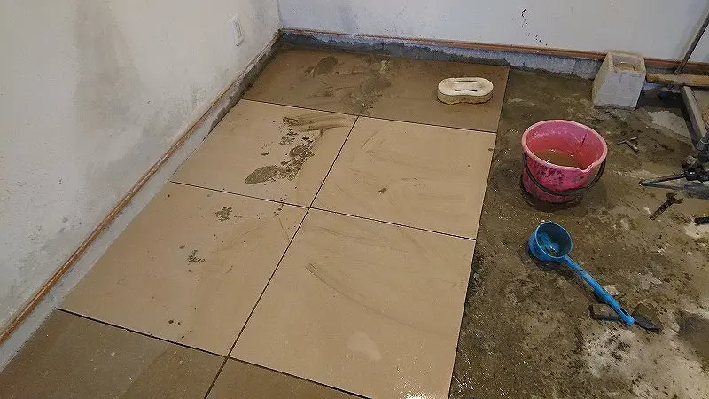 目地入れは、タイルを貼り終わり、モルタルが完全に硬化した3日目以降に行うのが理想である。