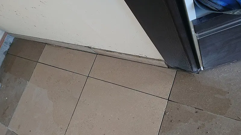 タイルDIY作業中は思わぬところにモルタルが飛散する。