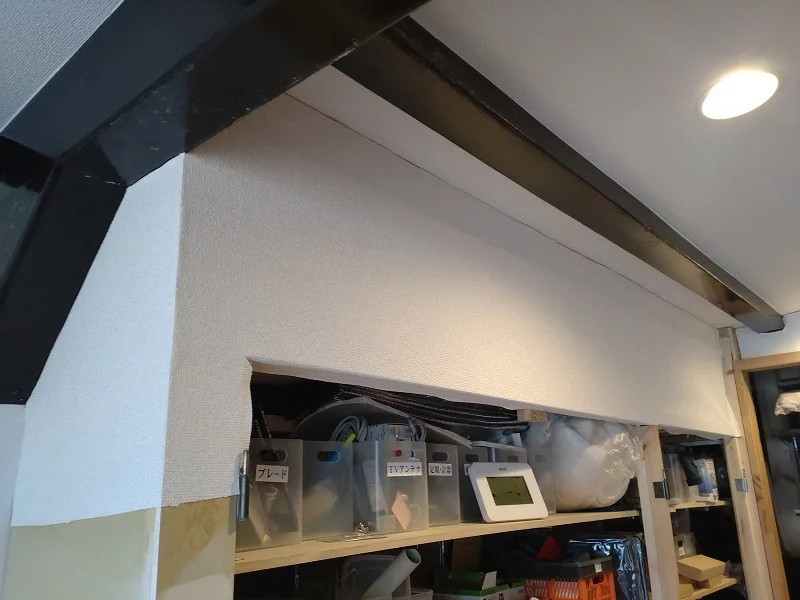 収納スペースへ壁紙を貼る