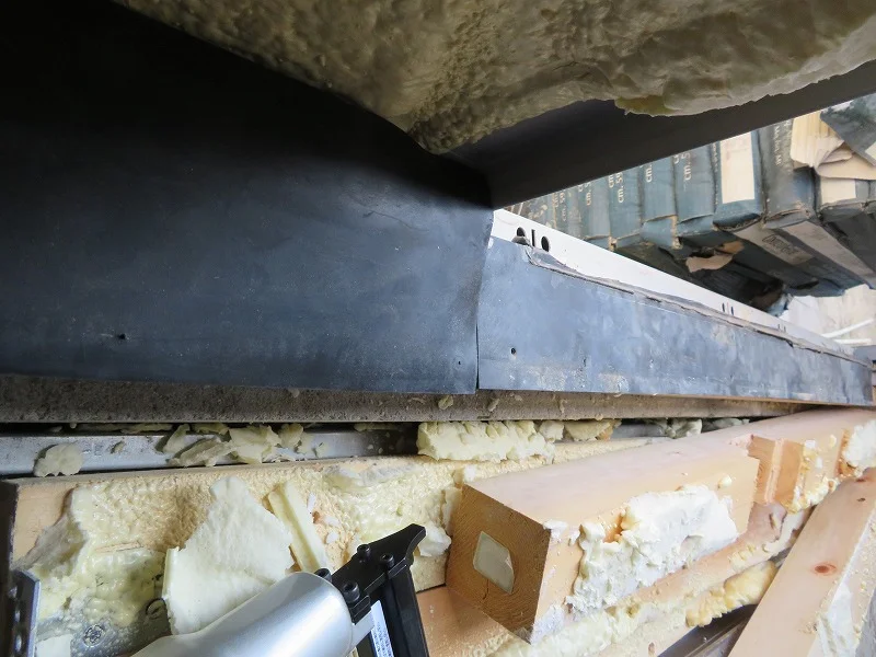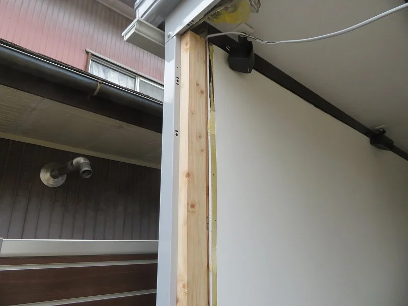 もう片方はイナバガレージの柱があるため、75mmの角材は使えない。
