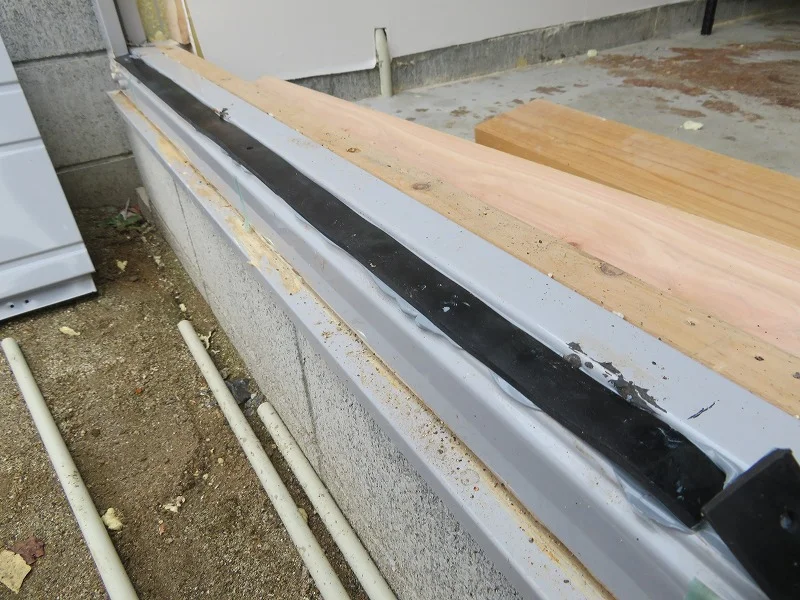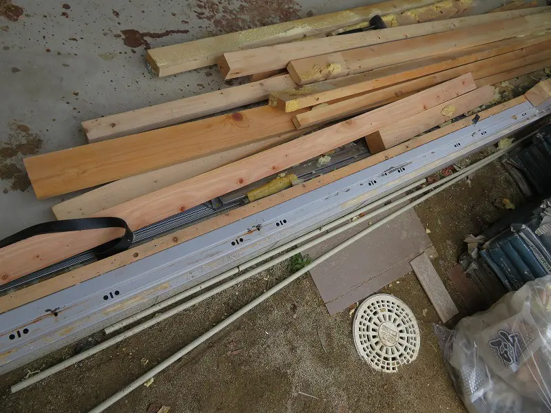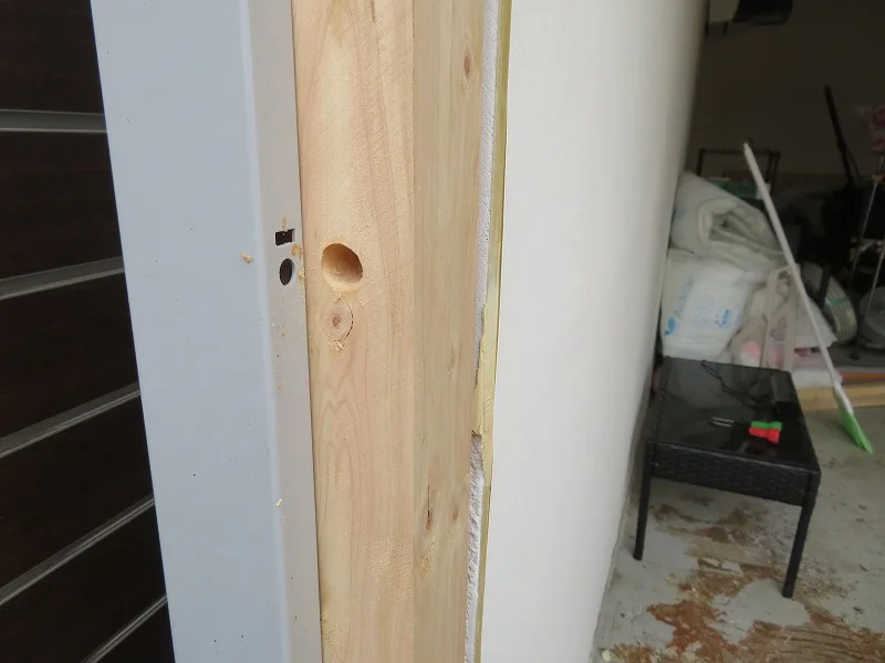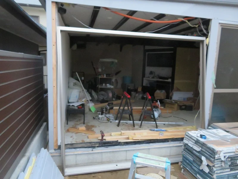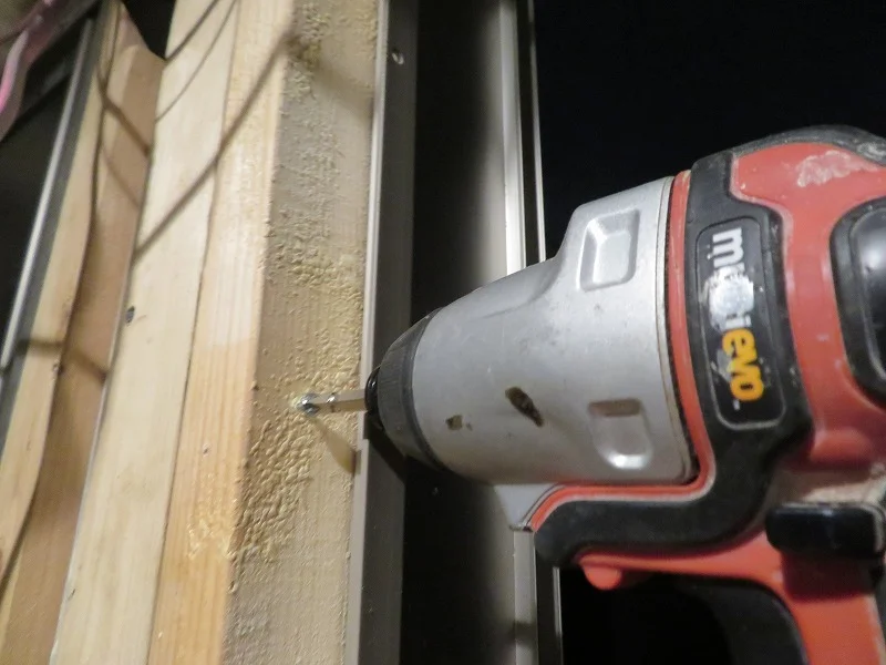 次にサッシ枠を固定するため、ガレージ側に木枠を備え付ける。